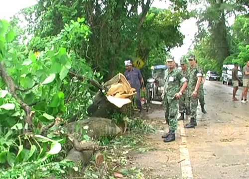 กระบี่ฝนหนักทหารเรือเร่งตัดต้นไม้ล้มขวางถนน