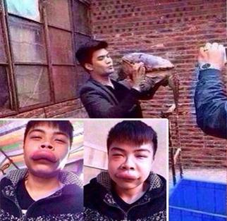 ภาพล่าสุด! หนุ่มจีนถูกเต่างับปากเจ่อ หลังขอจูบสุดท้าย