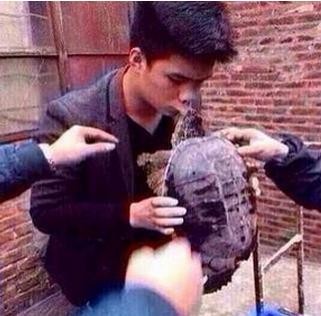หลังจากสื่อจีนรายงานข่าวว่า เว็บเว่ยป๋อของจีนเผยแพร่ภาพหนุ่มเคราะห์ร้ายรายหนึ่งถูกเต่างับปาก หลังเขาตั้งใจจะจูบร่ำลาก่อนจะปล่อยเต่าคืนสู่ธรรมชาติ ส่งผลให้ได้รับบาดเจ็บที่ริมฝีปาก