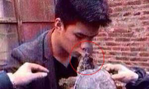 เว็บจีนเผยแพร่ภาพอาการล่าสุดของหนุ่มจีนผู้เคราะห์ร้ายหลังจากถูกเต่างับปากเจ่อ เพราะเขาขอจูบอำลาครั้งสุดท้ายก่อนปล่อยเต่ากลับสู่ธรรมชาติ