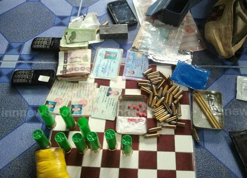 น.ต.สมคิด ภู่โต๊ะยา หัวหน้า สน.เรือเชียงของ (นรข.เขตเชียงราย) ร.ท.ศุภโชค กาญจนสุขเมฆิน ผบ.ร้อย ทพ.3101 นำกำลังร่วมกันตรวจค้นพื้นที่เป้าหมายโดยใช้ พ.ร.บ.กฎอัยการศึก ที่บ้านเช่าเลขที่ 334/6 ม.9 ต.เวียง อ.เชียงของ ติดน้ำโขงห่างจากสะพานมิตรภาพไทยลาวแห่งที่ 4 เพียง 500 เมตร พบชายหญิงวัยรุ่น 2 คน คือ นายสัมลิด นวนแจ่ม อายุ 24 ปี ชาว สปป.ลาว และ น.ส.เจนจิรา พันธุระ ชาว จ.เชียงราย ทั้ง 2 เป็นแฟนกัน ตรวจปัสสวะพบสารเสพติดทั้งคู่ พร้อมยึดกระสุนปืนลูกซอง เบอร์ 12 จำนวน 9 นัด แก๊ประเบิด ชนิดจุด จำนวน 13 อัน แก๊ประเบิด ชนิดใช้ไฟฟ้า จำนวน 13 อัน สายชนวนระเบิดชนิดกันน้ำ จำนวน 4 เส้น