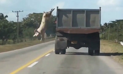 สำนักข่าวต่างประเทศรายงานว่า โลกโซเชียลเน็ตเวิร์กทั่วไปต่างพูดถึงคลิปวิดีโอ "หมู" ตัวหนึ่งในวินาทีที่ตัดสินใจกระโดดลงจากรถบรรทุกที่ขับอยู่บนถนนทางหลวง ระหว่างเส้นทางที่กำลังขนส่งนำมันไปโรงฆ่าสัตว์