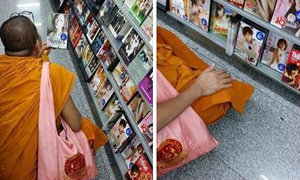 ฉาวว่อนเน็ต! พระนั่งเลือกซื้อหนังโป๊กลางห้างดัง