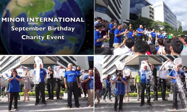 Taking up the Ice Bucket Challenge by Mr. William E. Heinecke, Chairman & CEO of Minor International, Mr. Paul Kenny, CEO of The Minor Food Group, leads the team with other executives whose birthdays are in September. Donations & proceeds go towards "English for Kids by Minor" campaign aimed to raise the standard of English language for Thai children.