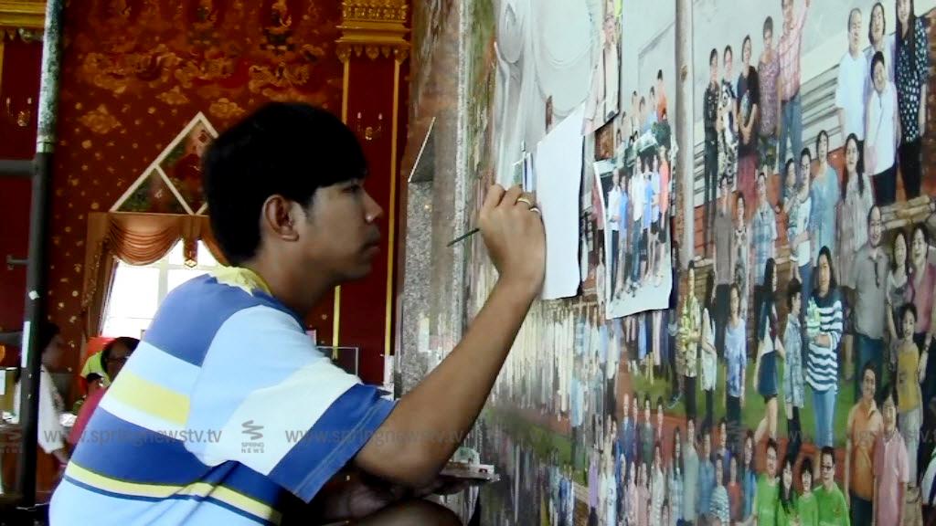 นายบุญทวี ทับทิมไทย อายุ 27 ปี ชาว จ.บุรีรัมย์ กล่าวว่า ตนและเพื่อนอีก 2 คน จบมาจากมหาวิทยาลัยศิลปากร และมีอาชีพรับงานจิตรกรรมฝาผนัง ภาพวาดตกแต่งในวัดทั่วไป และงานจิตรกรรมอื่นๆ เมื่อปีก่อน ได้รับการติดต่อจากพระครูวิเศษชัยวัฒน์ เจ้าอาวาสวัด ขุนอินทประมูลว่า มีแนวคิดที่ต้องการจะนำภาพของพุทธศาสนิกชนที่ใจบุญบริจาคเงินกับทางวัดไปวาด ไว้บนฝาผนังพระอุโบสถไฮเทคหลังนี้ ซึ่งเป็นภาพเหมือน เพื่อต้องการให้พุทธศาสนิกชนที่ร่วมบริจาคเงินได้อยู่ในประวัติศาสตร์ในการ สร้างพระอุโบสถไฮเทค