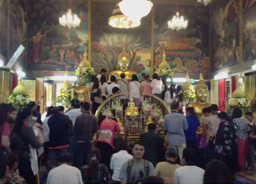 พุทธศาสนิกชน ยังหลังไหล่ทำบุญวัดบางพลี พร้อมกราบสักการะสิ่งศักดิ์สิทธิ์ ขณะเย็นวันนี้ มีกิจกรรมเวียนเทียนด้วย