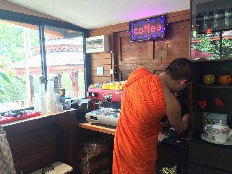 ฮือฮา! วัดเปิดร้านกาแฟคนมีบุญ หลวงพี่โชว์ฝีมือชง