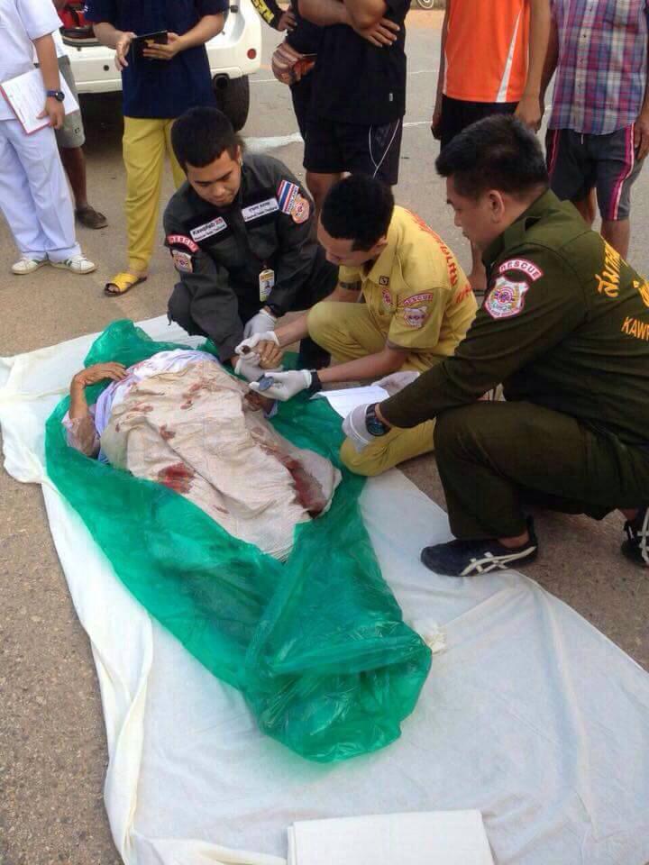 สะเทือนใจ รถชนยายวัย 82 ดับ ข้าวตักบาตรเกลื่อนถนนยายวัย 82 ปั่นจักรยานไปทำบุญ ถูกรถกระบะเฉี่ยวชนเสียชีวิต ภาพสะเทือนใจข้าวที่เตรียมไปใส่บาตรหกเกลื่อนถนน