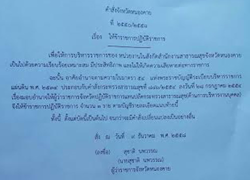 ผู้ว่าฯหนองคายเซ็นต์เด้งสสอ.รัตนวาปีแล้ว