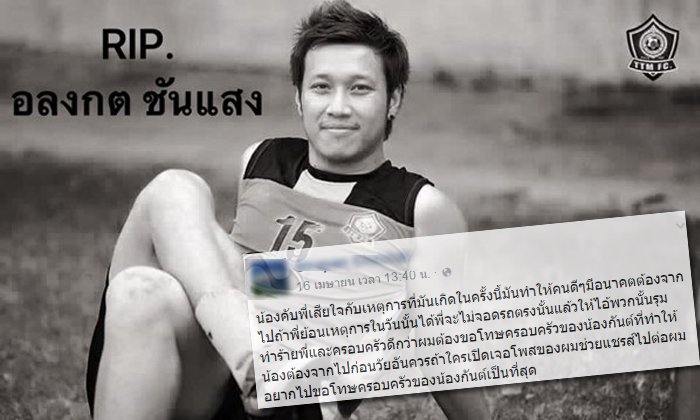 "น้องครับพี่เสียใจกับเหตุการณ์ที่มันเกิดขึ้นในครั้งนี้มันทำให้คนดีๆ มีอนาคตต้องจากไป ถ้าพี่ย้อนเหตุการณ์ในวันนั้นได้ พี่จะไม่จอดรถตรงนั้นแล้วให้ไอ้พวกนั้นรุมทำร้ายพี่และครอบครัวดีกว่า
