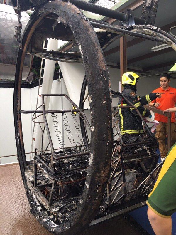 เบื้องต้น มีรายงานว่า ตัวกระเช้าที่เกิดเพลิงไหม้ไม่มีคนอยู่ภายใน แต่มีคนใช้บริการชิงช้าสวรรค์อยู่ภายในกระเช้าอื่น เจ้าหน้าที่อยู่ระหว่างการให้ความช่วยเหลือ และเนื่องจากขณะนี้มีฝนตกทำให้ไฟดับลงแล้ว เจ้าหน้าที่อยู่ระหว่างการสอบสวนหาสาเหตุ