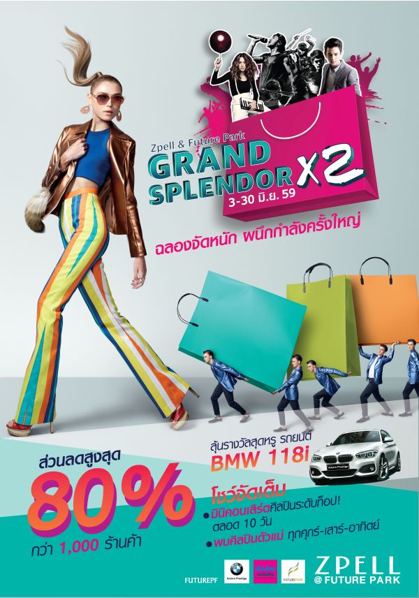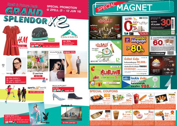 สนุก..สุดฟิน คูณสอง...พร้อมช้อป ชิลล์ กับโปรโมชั่นสุดแรง ลดสูงสุดกว่า 80% ในงาน “Zpell&Future Park Grand Splendor X2” ระหว่างวันที่ 3 – 12 มิถุนายน 2559 ณ ศูนย์การค้า สเปลล์ และฟิวเจอร์พาร์ค
