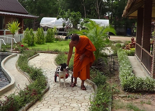 สุโขทัย 'เจ้าบุญทิ้ง' หมาขาขาดหนีตายเข้าไปในวัดศรีชุม อ.เมือง จ.สุโขทัย ได้รถวีลแชร์ช่วยเดินแล้ว
