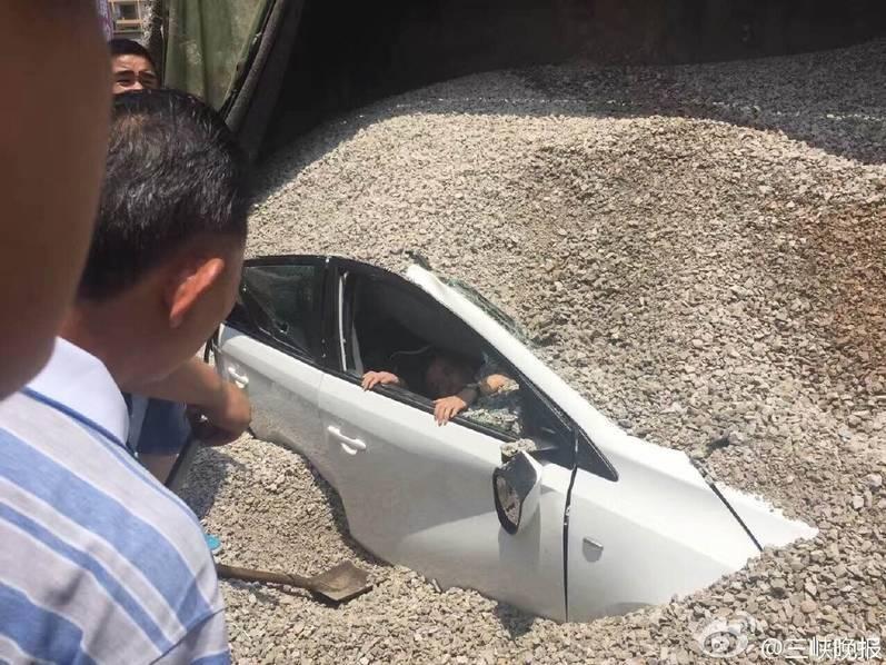สำนักข่าวประเทศรายงานว่า (22 ก.ค.) ที่มณฑล หู่เป่ย ประเทศจีน เกิดเหตุรถบรรทุกก้อนกรวดขนาดใหญ่ ล้มกลางถนนทับรถเก๋งสีขาว จนไม่สามารถเคลื่อนรถได้ จึงทำให้มีคนขับติดอยู่ในรถ จนต้องเรียกรถพยาบาลและกู้ภัยรีบเข้ามาช่วยเหลือโดยด่วน โชคดีที่คนที่ติดอยู่ในซากรถไม่เป็นอะไรมาก