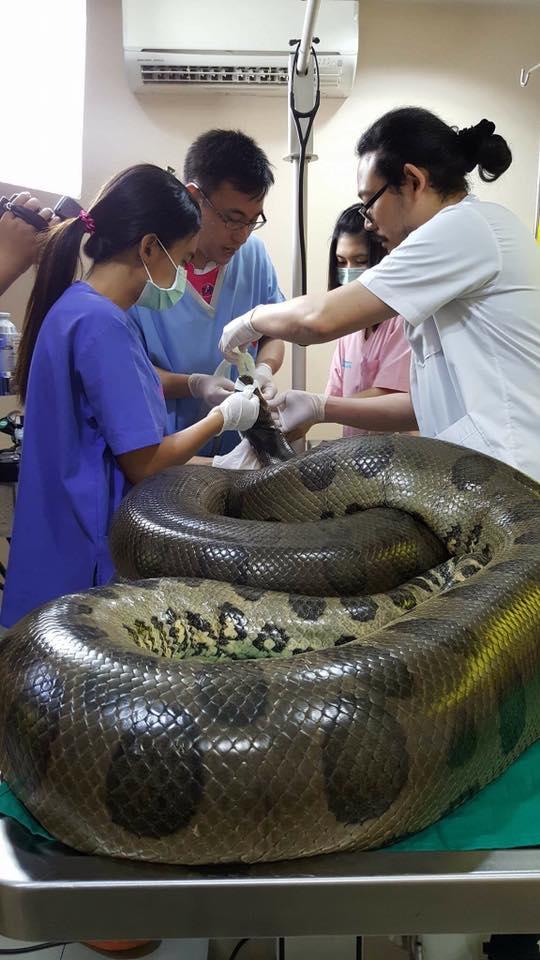 ยกนิ้วให้! สัตวแพทย์ไทยช่วยงูอนาคอนด้า ผ่าเนื้องอกออก