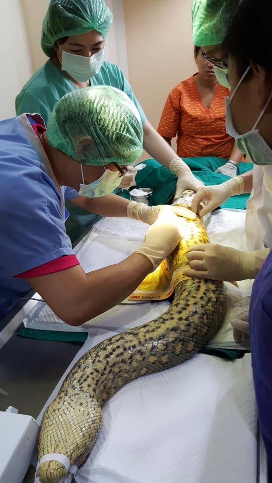 ยกนิ้วให้! สัตวแพทย์ไทยช่วยงูอนาคอนด้า ผ่าเนื้องอกออก