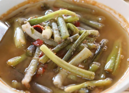 โดยนางละมูล กิตติคุณดิลก อายุ 53 ปี เปิดเผยว่าชาวมอญส่วนใหญ่มีบ้านเรือนอยู่ติดกับแม่น้ำ ทำให้ผักในแม่น้ำหลายชนิดสามารถนำมาประกอบอาหารได้ อย่างเช่นผักปอด หรือผักตบชวา ที่ปัจจุบันเป็นพืชที่สร้างปัญหากับแม่น้ำลำคลอง แต่หลายคนยังของไม่รู้ว่าผักตบชวาหรือหลายคนเรียกว่าผักปอด นั้นสามารถนำมาประกอบอาหารได้เป็นอาหารโบราณที่นิยมกินกันมาช้านานกว่า 100 ปีแล้ว โดนดอกของมันนำมาจิ้มน้ำพริก ไหลของผักปอดนำมาทำเป็นแกงส้มได้อร่อยมากที่สุด ซึ่งแกงส้มผักปอดทำง่ายด้วยการโขลกพริกแกง ตั้งน้ำให้เดือดนำไหลผักปอดลงใส่หม้อ ตามด้วยพริกแกงที่โขลกกับเนื้อปลาปรุงรสชาติตามต้องการ ด้วยน้ำปลาและน้ำมะขามเปียก จะได้รสชาติอร่อย ไหลของผักปอดจะมีความกรอบ กุ๊ป เป็นอาหารพื้นบ้านที่ชาวไทยเชื้อสายมอญชอบกินกันมากในอดีตที่ผ่านมา
