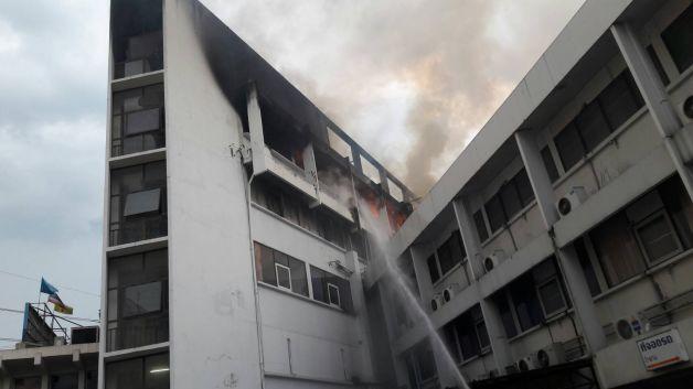 เจ้าหน้าที่อยู่ระหว่างดำเนินการดับเพลิงโดยแสงเพลิงลามเป็นแนวยาว ลุกรุนแรงอยู่ด้านใน เจ้าหน้าที่กำลังพังประตู เข้าไปชั้น 4 และชั้น 5 เพื่อเข้าไปถึงจุดต้นเพลิง เพลิงยังคงลุกไหม้