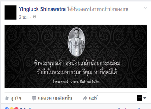 ยิ่งลักษณ์เปลี่ยนหน้าปกFBถวายอาลัยในหลวง