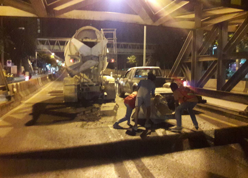 ตร.พญาไท ตรวจสอบเหตุรถขนปูนชนคานสะพานข้ามแยกพญาไท ตั้งข้อหาคนขับฝ่าฝืนเครื่องหมายจราจร