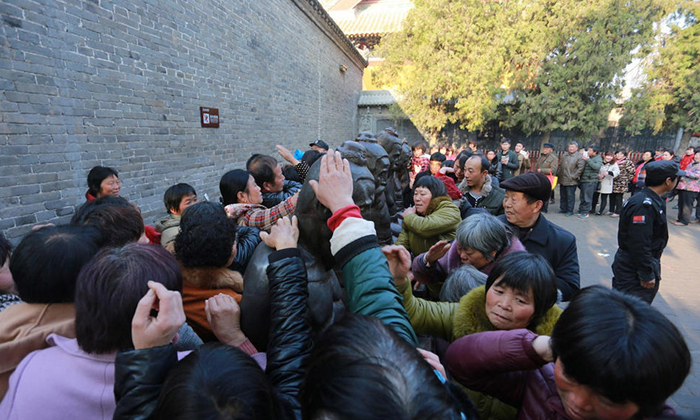 อัลบั้มภาพ 5 ภาพ ของ เนืองแน่น ชาวจีนหลั่งไหลตบตีรูปปั้น หวังปัดเป่าสิ่งชั่วร้าย
