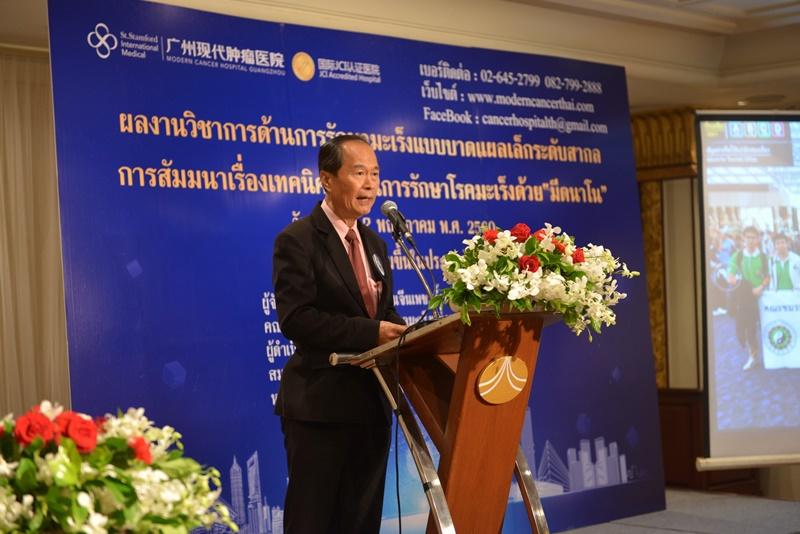 เครือข่ายแพทย์แผนจีนเพชรน้ำหนึ่งแห่งประเทศไทย ร่วมกับคณะกรรมการวิชาการการรักษาโรคมะเร็งแห่งอาเซียน และสมาคมหอการค้าไทยของชาวมณฑลกวางซีประจำประเทศไทย ซึ่งได้รับการสนับสนุนจากโรงพยาบาลมะเร็งสมัยใหม่กว่างโจวแสตมป์ฟอร์ด นำโดย นายแพทย์จีนสุรินทร์ ส่งทานินทร์ ประธานเครือข่ายแพทย์จีนเพชรน้ำหนึ่ง และ นายหลิน ช่าว หัว รองผู้อำนวยการ กลุ่มบริษัท ป๋ออ้าย กรุ๊ป จำกัด พร้อมด้วยคณะแพทย์ผู้เชี่ยวชาญด้านการรักษาโรคมะเร็ง จัดงานแถลงข่าววิธีรักษาโรคมะเร็งด้วยเทคนิคสมัยใหม่ในหัวข้อ “ความก้าวหน้าของการรักษาโรคมะเร็งด้วยเทคนิคสมัยใหม่” ซึ่งนับว่าเป็นครั้งแรกของประเทศไทย โดยการใช้มีดนาโน หลังจากทีมแพทย์ได้ใช้ระยะเวลาผลักดัน และพัฒนาเทคนิคการรักษาโรคมะเร็งในระดับสากล เพื่อหวังที่จะช่วยเหลือผู้ป่วยโรคมะเร็งแม้ในระยะ 3-4 ทั้งยังเพิ่มประสิทธิภาพการรักษาโรคมะเร็งแบบบูรณาการให้สูงขึ้นอีกด้วย พร้อมกันนี้ในงานแถลงข่าว ยังได้รับเกียรติจากผู้ป่วยชาวไทยที่รักษาโรคมะเร็งได้สำเร็จมาร่วมแบ่งปันประสบการณ์การรักษาอีกด้วย โดยมีบุคคลทั่วไปและสื่อมวลชนเข้าร่วมงานเป็นจำนวนมาก