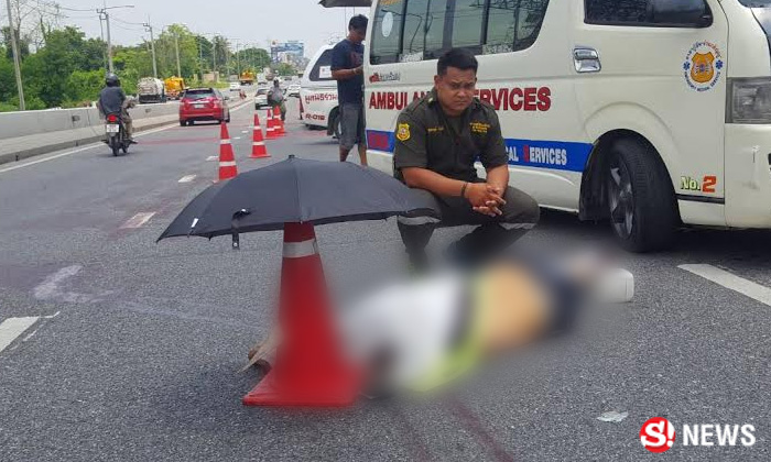 (23 พ.ค.) ร.ต.อ.เสถียร เสนผาบ ร้อยเวร สภ.คลองข่อย จ.นนทบุรี ได้รับแจ้งเหตุรถจักรยานยนต์ชนท้ายรถยนต์กระบะ มีผู้เสียชีวิตบนถนนชัยพฤกษ์ หมู่ 3 ต.บางพลับ อ.ปากเกร็ด จ.นนทบุรี จึงประสานแพทย์จากสถาบันนิติวิทยาศาสตร์และเจ้าหน้าที่อาสาสมัครมูลนิธิร่วมกตัญญู รุดตรวจสอบ