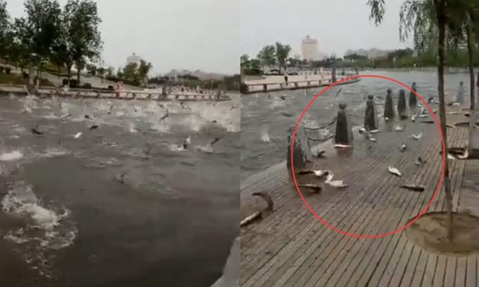 (15 มิ.ย.) เว็บไซต์ข่าวประเทศจีนรายงานว่า มีชาวเน็ตพากันแชร์ต่อคลิปวีดิโอหนึ่งอย่างแพร่หลาย โดยเป็นภาพฝูงปลาจำนวนมากพากันกระโดดขึ้นมาเหนือผิวน้ำ บางส่วนก็กระโดดขึ้นมาบนฝั่ง พากันกระโดดดีดดิ้นอยู่สักพักก่อนเริ่มสงบลง สร้างความตื่นตะลึงให้ฝูงชนเป็นอย่างมาก ด้วยไม่รู้ว่าเกิดอะไรขึ้น