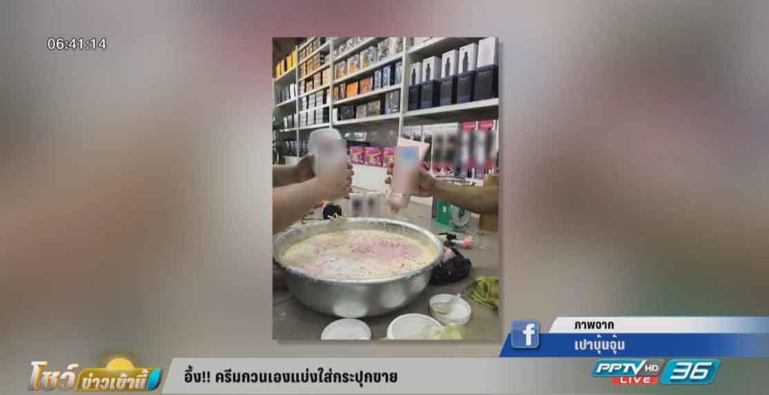 อึ้ง!! สาวผสมครีมกวนเอง แบ่งใส่กระปุกขาย