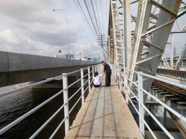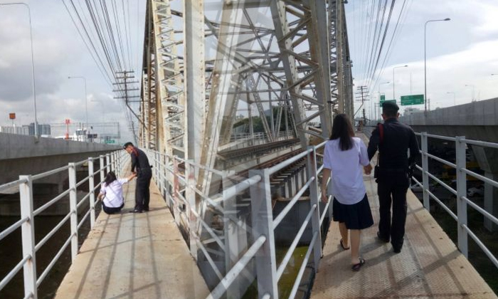จส.100 จึงประสานต่อที่ สน.นพวงศ์ โดย ด.ต.กิตติ ตงคง และ ด.ต.สืบศักดิ์ คันธะคง สายตรวจประจำจุดตรวจบางซื่อจึงรีบเดินทางไปยังจุดเกิดเหตุ พบเด็กนักเรียนยังนั่งอยู่กลางสะพานเหนือแม่น้ำเจ้าพระยา จึงค่อยๆเดินเข้าไปหา พูดเกลี้ยกล่อมจนเด็กสาวยอมพูดคุยด้วยและบอกกับตำรวจว่ามีปัญหากับเพื่อนชาย จึงไม่ได้ไปโรงเรียน และตัดสินใจมานั่งร้องไห้ที่กลางสะพานโดยที่ยังไม่รู้ว่าจะทำอย่างไรต่อไป ตำรวจจึงปลอบประโลมพูดคุยต่ออีกสักพัก ก่อนที่เด็กสาวจะยอมจับมือเจ้าหน้าที่ตำรวจ พากันเดินลงสะพานด้วยความปลอดภัย
