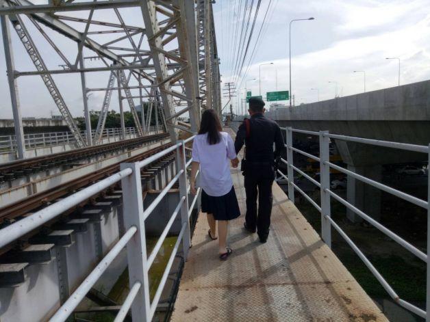 ตำรวจรับแจ้งนักเรียนหญิงนั่งร้องไห้บนสะพานพระราม 6 เข้าไปคุยปลอบโยนจนเด็กวางใจ เดินจับมือกันลงมาจากสะพานอย่างปลอดภัย