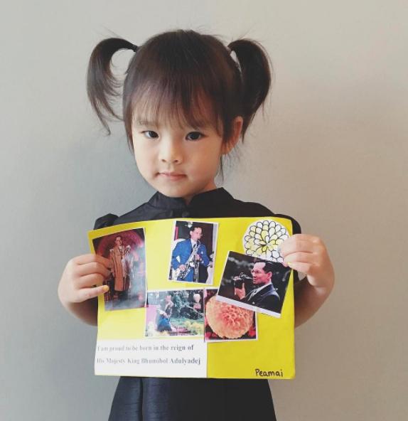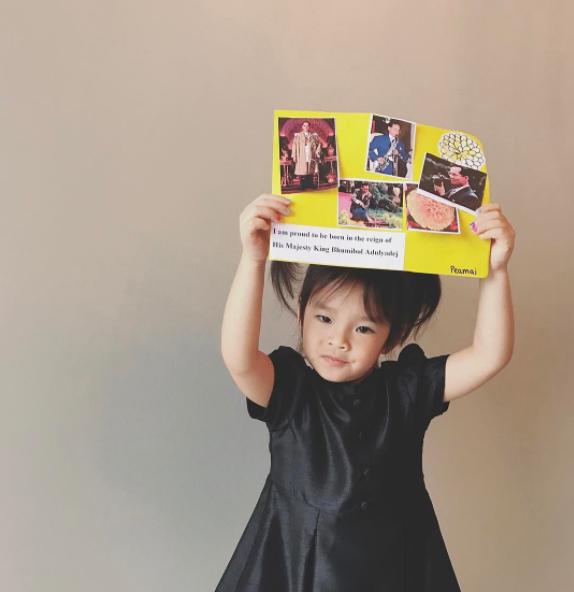 "เมื่อให้ปีใหม่ถ่ายรูปโชว์ผลงานตัวเองจากที่โรงเรียน ปีใหม่ยิ้มแฉ่งด้วยความภูมิใจ แม่ต้องปรามให้ยิ้มน้อยๆค่ะ นี่ในหลวงนะคะปีต้องเคารพ สำรวม เด็กน้อยยังคงไม่เข้าใจ "ทำไมอ่ะแม่ ในหลวง ปีรักในหลวงไงคะแม่" แม่นี่อธิบายไม่ถูกเลย "รู้ว่าลูกรักในหลวงค่ะ แต่เรารักแบบเทิดทูนไว้เหนือหัวแบบนี้ลูก นำรูปท่านมากอดแนบหน้าแบบนั้นไม่ได้ค่ะ เอางี้... เอาแบบปีใหม่รักในหลวงมาก แบบเก็บไว้ในใจ ปีเข้าใจไหมลูก" เลยได้ออกมาเป็น3ภาพนี้ค่ะ ปล.คำศัพท์ไม่ถูกต้องเพราะต้องอธิบายง่ายที่สุดให้เด็กสองขวบฟังนะคะ #ธสถิตในดวงใจไทยนิรันดร์ #ฉันภูมิใจที่ได้เกิดในแผ่นดินไทยสมัยรัชกาลที่๙"
