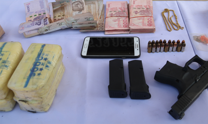 เจ้าหน้าที่จึงได้ยึดยาบ้าทั้งหมดพร้อมด้วยอาวุธปืนพกสั้น ขนาด 9 มม. จำนวน 1 กระบอก ซองบรรจุกระสุน จำนวน 2 อัน กระสุนปืน ขนาด 9 มม. จำนวน 13 นัด และยึดทรัพย์สิน จำนวน 6 รายการ มูลค่าประมาณ 610,7000 บาท