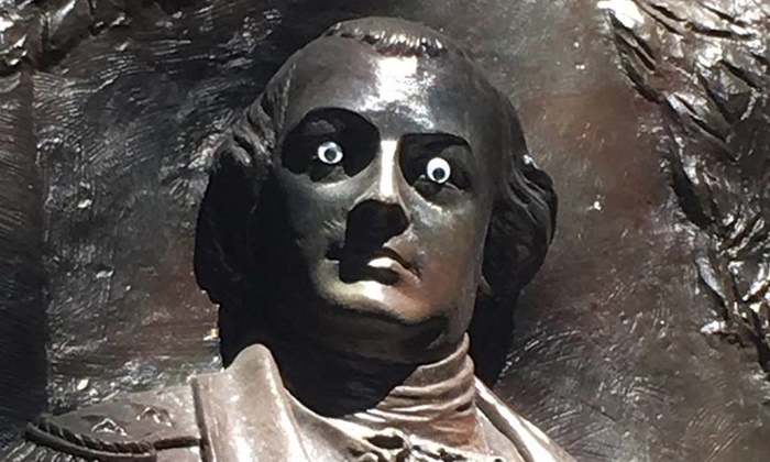 สำนักข่าวต่างประเทศรายงานว่า เจ้าหน้าที่ตำรวจกำลังเร่งแกะรอยสืบสวนหาตัวการที่นำเอาสติ๊กเกอร์ดวงตามาติดไว้บนอนุสาวรีย์วีรบุรุษผู้กล้าในสงครามปฏิวัติอเมริกา แม้ว่าความคึกคะนองจะมองว่าเป็นเรื่องขบขัน แต่ส่วนใหญ่มองว่าเป็นการกระทำที่เหมาะสมและไร้กาลเทศะสิ้นดี