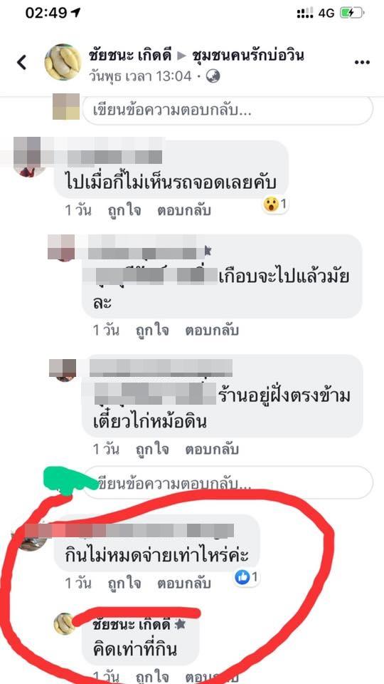 ส่วนท่านได้ที่ว่าผมโกง ผมท้าคุณมากินใหม่ ถ้ากินไม่ได้จะให้อะไรผม ถ้าคุณกินได้ผมแจกสองเท่า ผมค้าขายถ้าคิดว่าผมเอาเปรียบสอบถามที่ร้านก่อนกินมีคนมาถามเยอะแยะ ไม่กินก็มี ซื้อกลับบ้านก็มี ผมให้ชิมก่อนซื้อทุกครั้ง จริงมั๊ย