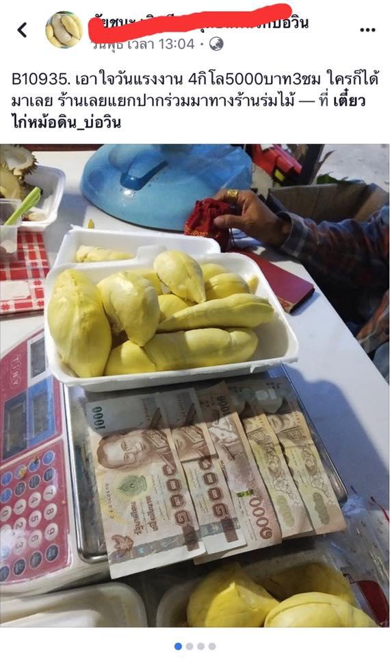 ดราม่าอีกแล้ว! คนไปลองชิมโพสต์เฟซ โปรกินทุเรียนหมด 4 กก. ภายใน 3 ชั่วโมง แถมเงิน 5 พัน ต้องอ่านกติกาให้ดีๆ กินไม่หมดจ่ายเงินตามที่กิน มีค่าปอกอีก 1 พันบาท ลั่นคนปอกไม่ได้มาฟรี