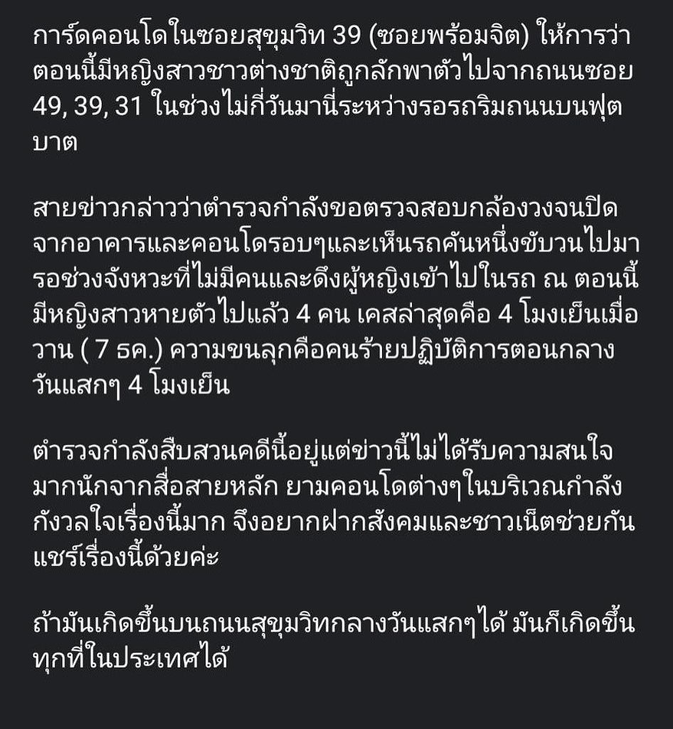“ค่ะ ใช่ค่ะ มันเป็นเหตุการณ์ที่ค่อนข้างมาจากอินไซด์อ่ะเนอะ เราก็เลยโพสต์ไป ทั้งนี้ทั้งนั้นเราก็อยากช่วยคนที่โดนอุ้มและเตือนประชาชนที่ใช้ชีวิตแบบไม่ระวัดระวังค่ะ”