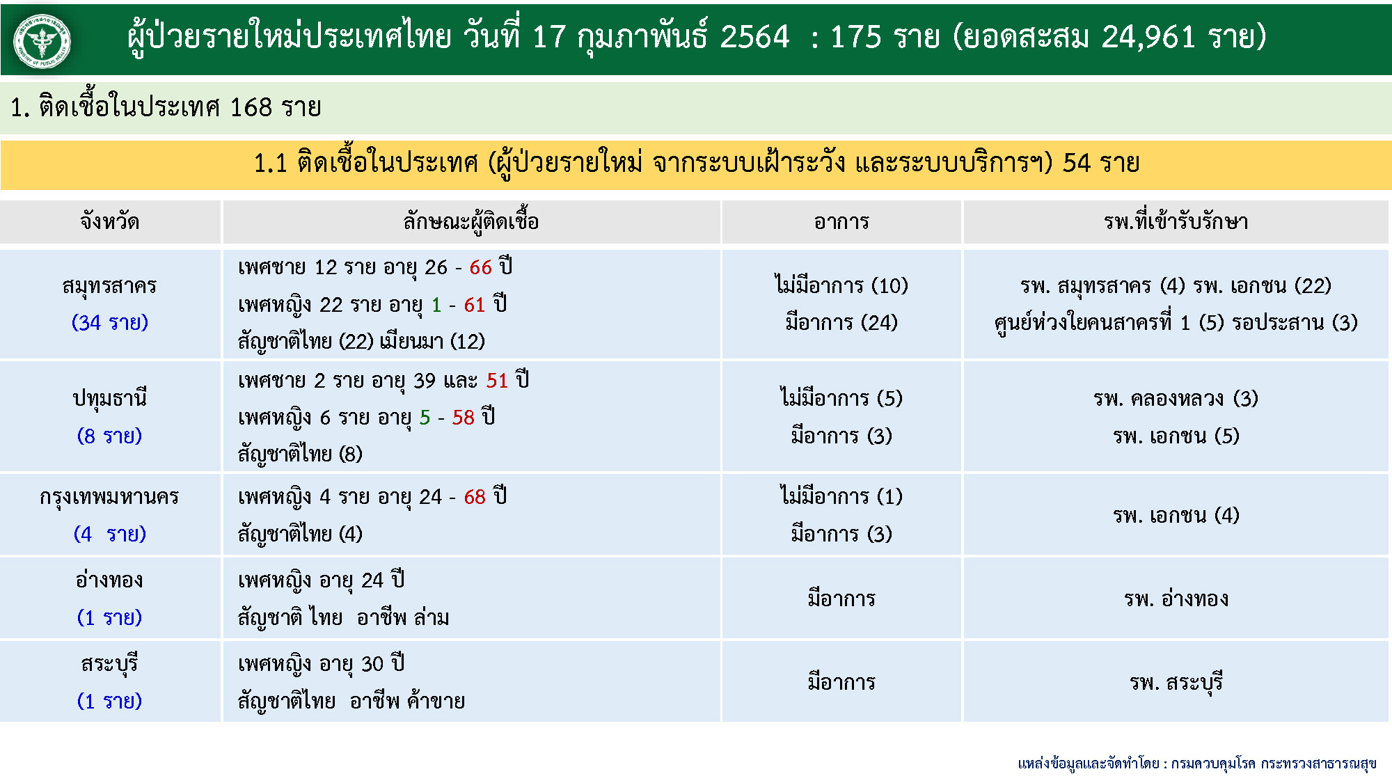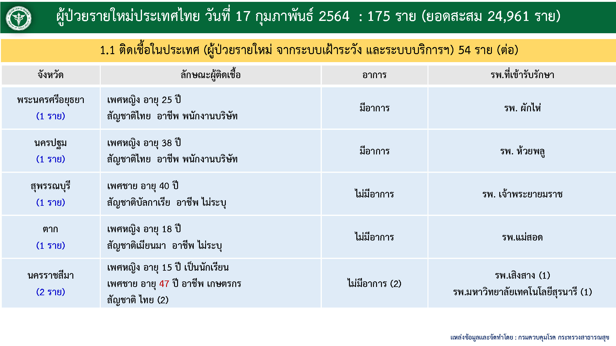 วันนี้ (17 ก.พ.) นพ.ทวีศิลป์ วิษณุโยธิน โฆษกศูนย์บริหารสถานการณ์การแพร่ระบาดของโรคติดเชื้อไวรัสโคโรนา 2019 (โฆษก ศบค.) แถลงถึงสถานการณ์โควิด-19 ในประเทศไทย จากศูนย์บริหารสถานการณ์โควิด-19 หรือ ศบค. ณ ตึกสันติไมตรี ทำเนียบรัฐบาล ว่า