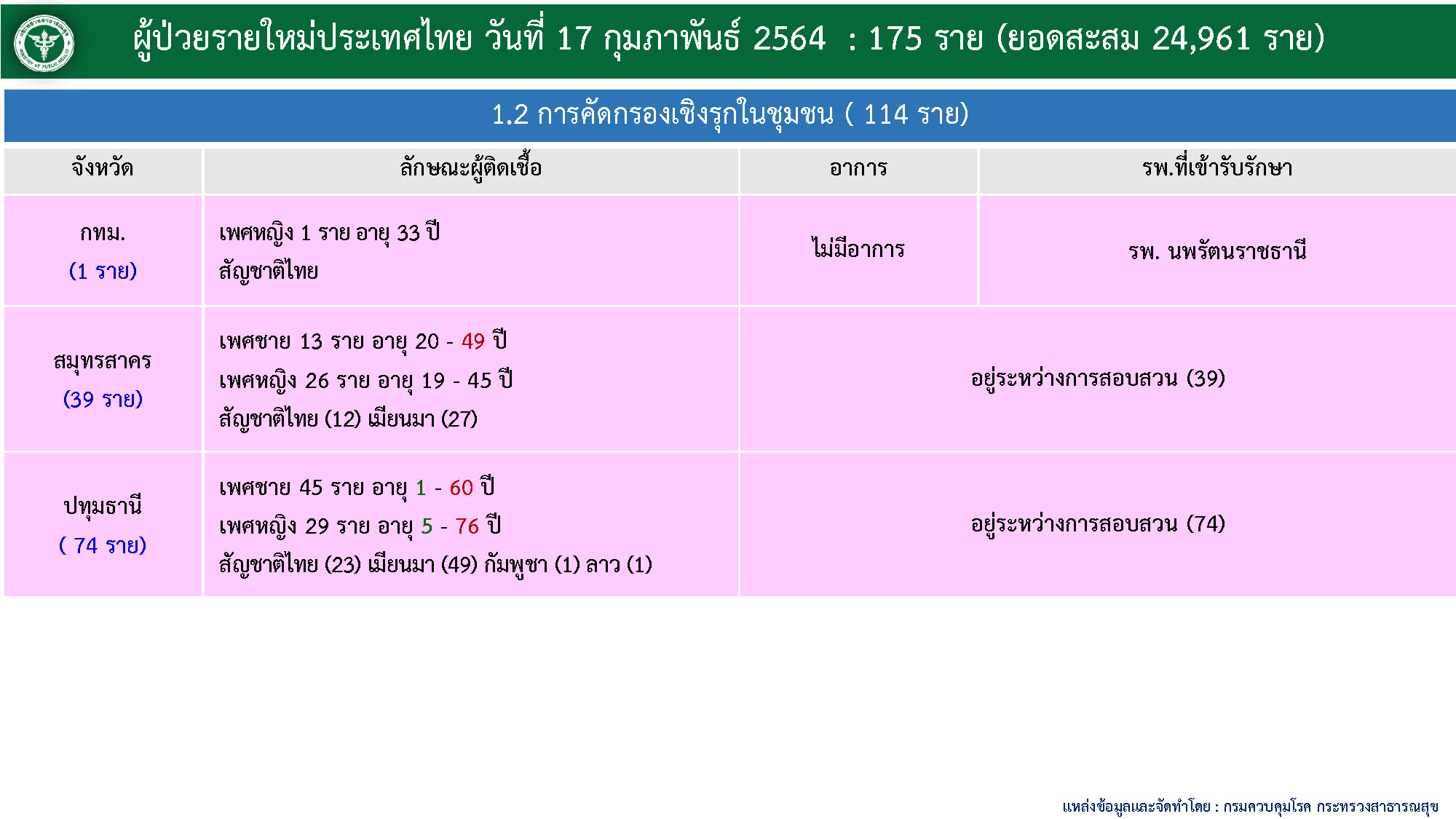 2.ค้นหาผู้ติดเชื้อเชิงรุกในชุมชน 114 ราย