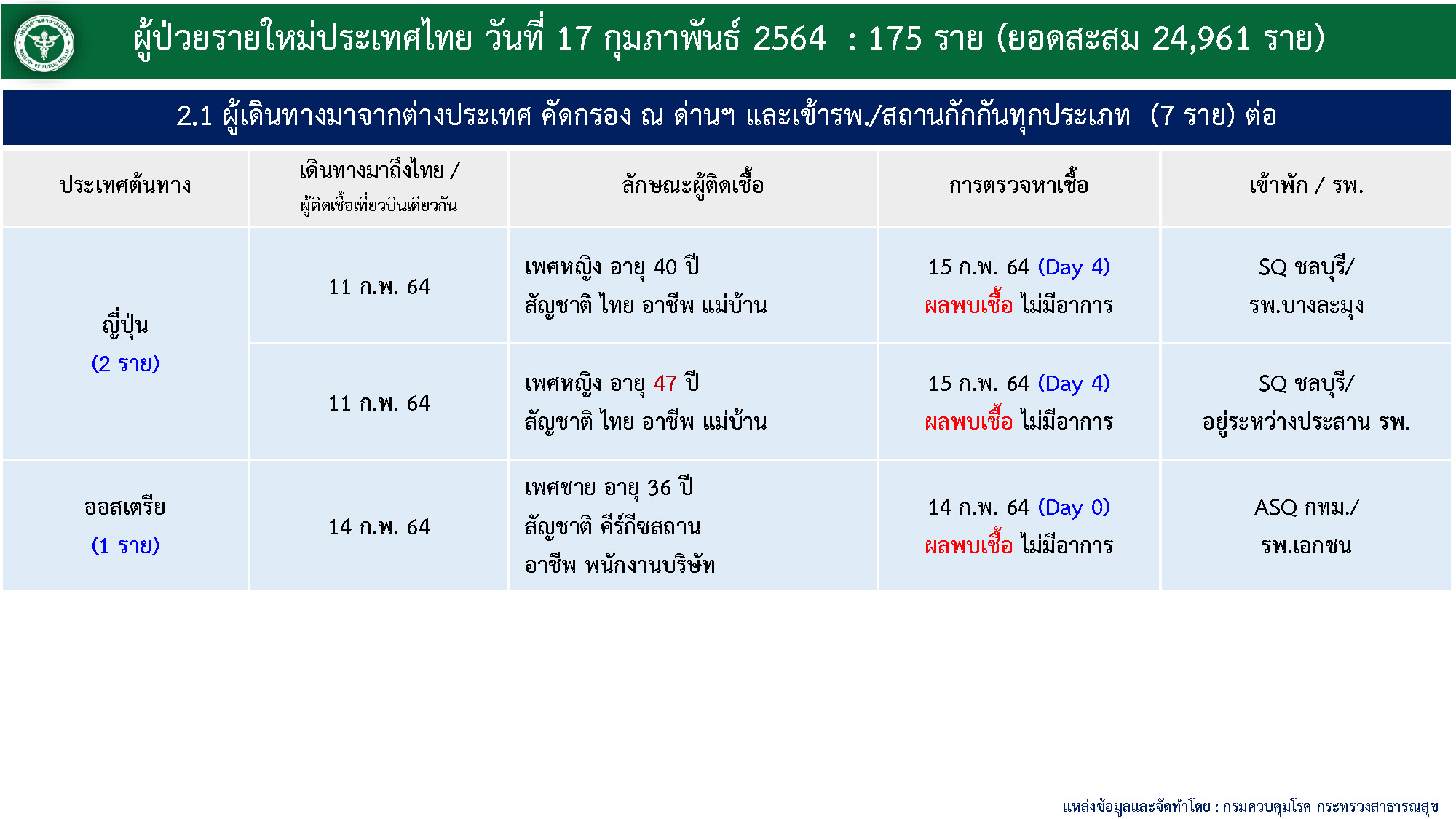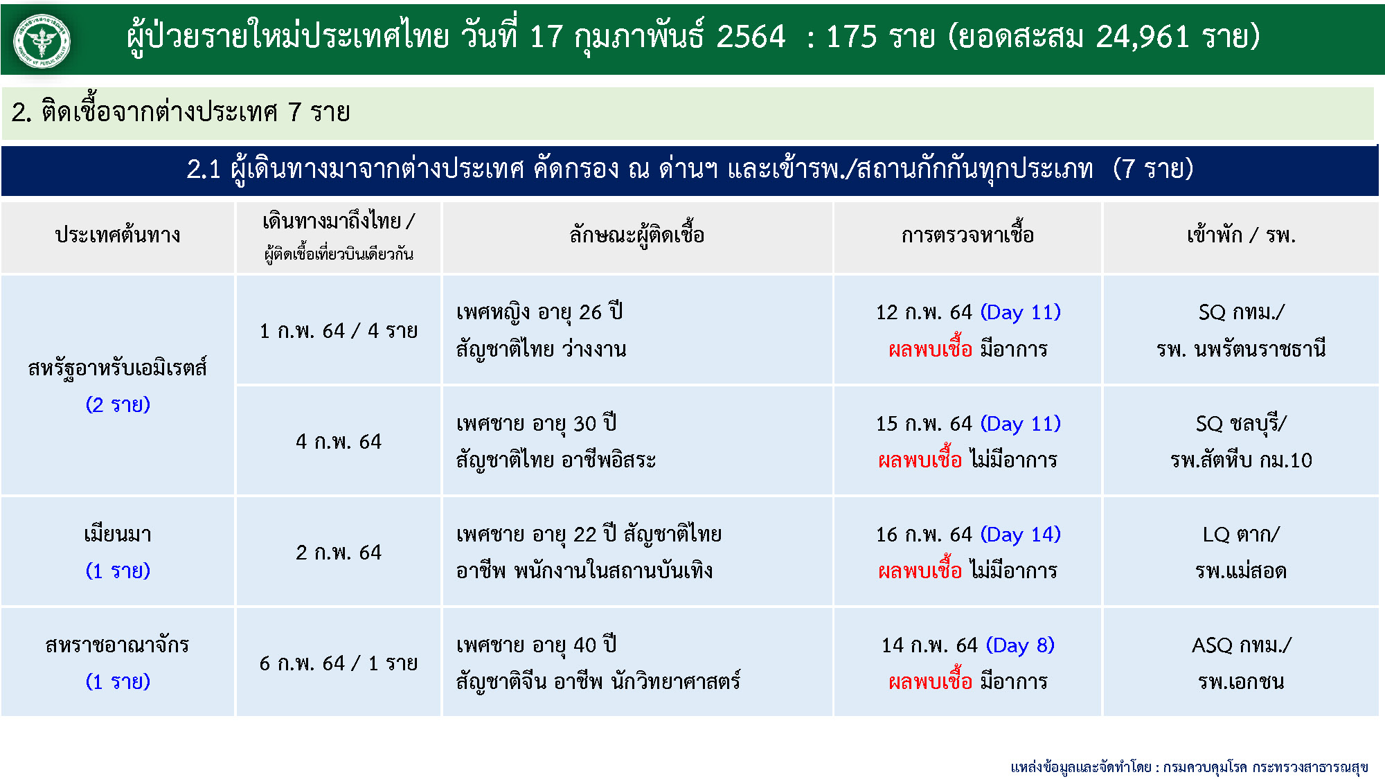 3.ผู้ที่เดินทางมาจากต่างประเทศและเข้าสถานกักกันโรค (State Quarantine) 7 ราย