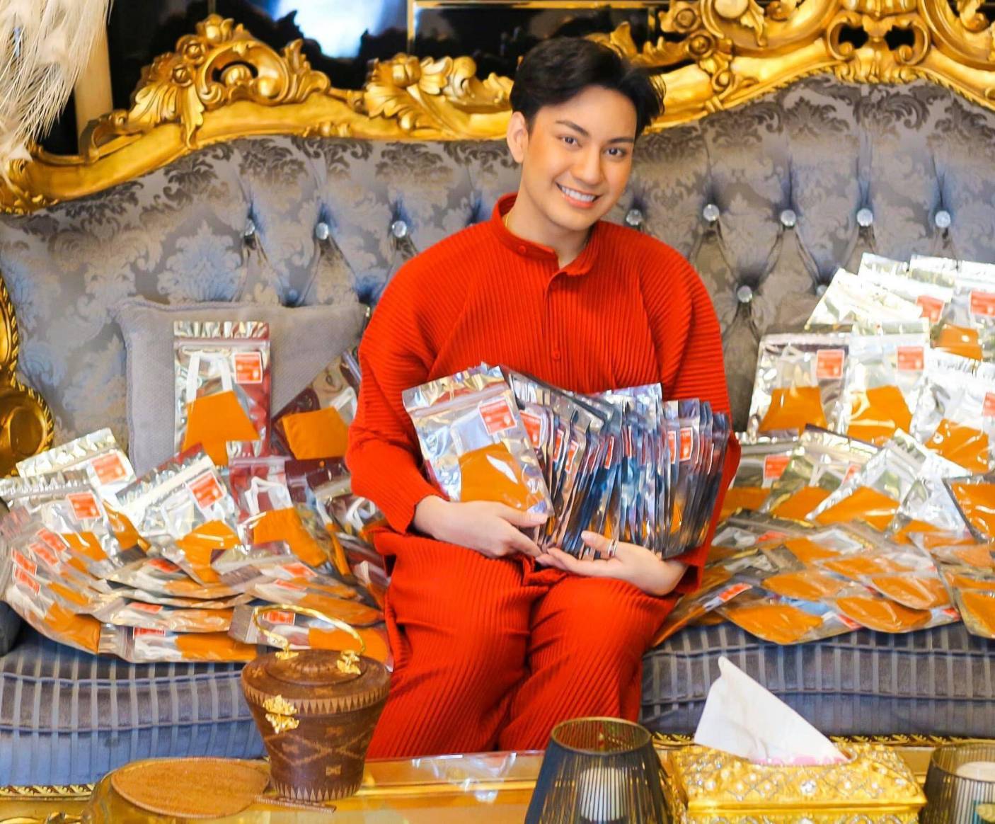 “ที่บ้านเราไม่มีเหมือนคนอื่น ก็เลยตั้งเป้าไว้ว่าจะมาเรียนต่อที่กรุงเทพฯ พอมาเรียนบริหารที่ ม.ราม ภาคพิเศษ ระหว่างนั้นก็พยายามหาอะไรทำไปด้วย พอดีเป็นคนชอบแต่งตัวแปลกๆ ใส่เสื้อต้องมีปักโน่นนี่นั่น ก็เลยเอาเสื้อเชิ้ตมาปัก แบบเดียวตัวเดียวในโลก โพสต์ขายให้เซเลบในเฟซบุ๊ค ตัวละ 5,000 บาท ปรากฏว่าโชคดีขายดีมาก มีคนทักมาซื้อเยอะ พอมีทุนก็ไปเดินทั่วเยาวราชเพื่อหาซื้อแหวนทองลายแปลกๆ มาสะสมไว้ พอคนเห็นว่าสวยดีก็มาขอซื้อ เราก็เลยรับมาขายเลย ระหว่างนั้นก็ไปรับซื้อพวกจิวเวลรี่มือสองหลุดจำนำ มาไลฟ์ขายด้วย ก็ขายดีมาตลอด จนมาเริ่มธุรกิจไลฟ์สดขายทอง วันแรก 10 วงขายเกลี้ยงเลย ก็เริ่มมากขึ้น จนมาพีคสุดเมื่อ 6 ปีที่แล้ว เคยขายได้วันละ10 ล้านบาท อันนี้รวมทุนที่ซื้อมาด้วยนะคะ พอขายดีก็เริ่มมีข่าวคราวดราม่าต่างๆ เข้ามา ทั้งเรื่องขายทองปลอม ซึ่งเรายืนยันตรงนี้เลยว่าร้านเราไม่มีชิ้นไหนเป็นปลอม ส่วนเรื่องงานบวช 100 ล้าน เราก็ไม่ได้เป็นคนบอกเอง เพื่อนๆ เอาไปโพสต์ พวกทองต่างๆ ในงานบวช เราซื้อสะสมไว้หลายปีแล้ว และที่จัดงานบวชใหญ่เพราะเราเป็นแบบนี้งานแต่งก็ไม่มี เราก็เลยคิดว่าครั้งนึงในชีวิตอยากจะจัดงานบวช และช่วยประชาสัมพันธ์บ้านเกิดของเราด้วยค่ะ”