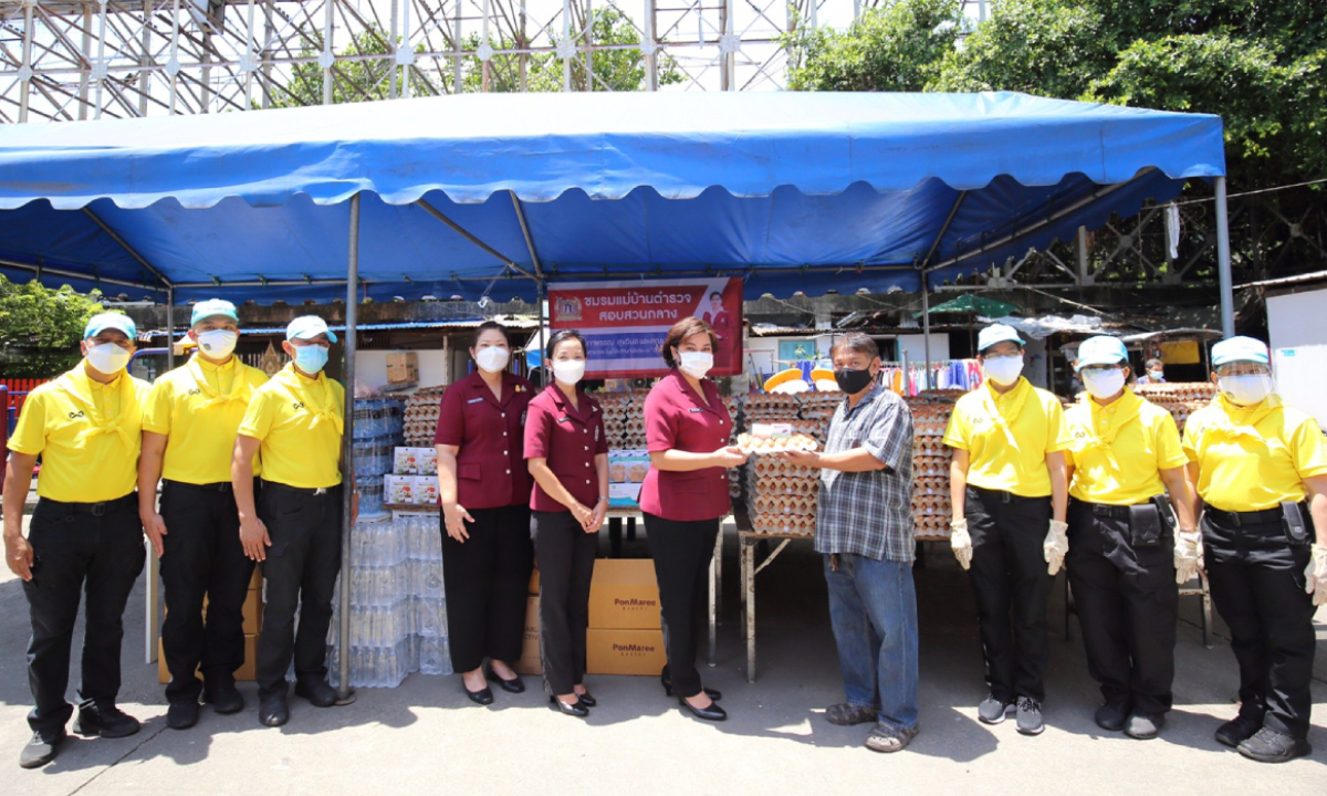 คุณนิภาพรรณ สุขวิมล ประธานชมรมแม่บ้านตำรวจสอบสวนกลาง, คุณพิกุลอรุณ พิชิตชัยศิริ, คุณศิริวัลย์ ไตรพจน์ กรรมการบริหารชมรมฯ และคุณกัลยา เตรียมวิทยา, คุณนิรมล จิรปิติ ผู้บริหารบริษัท NB CREATION จำกัด, คุณอธิษฐ์พัชร นิพิษฐาภัทร ผู้บริหารบริษัท ท่าช้าง โกลบอล จำกัด พร้อมด้วยข้าราชการตำรวจจิตอาสา บก.อก.บช.ก. และ บก.รฟ. นำโดย พ.ต.อ.ณัฐพล ลิปิพันธ์ ร่วมมอบข้าวสารอาหารแห้งและอุปกรณ์ป้องกันการแพร่ระบาดของโรคติดเชื้อไวรัสโคโรนา 2019 ประกอบด้วย ข้าวสาร 1,220 ถุง, ไข่ไก่ 1,220 แผง, น้ำดื่มตำรวจรถไฟ, หน้ากากอนามัย 5,000 ชิ้น, ขนมปังเบเกอรี่, สมุนไพรฟ้าทะลายโจรชนิดแคปซูล, อุปกรณ์วัดออกซิเจนชนิดพกพา และกาแฟปรุงสำเร็จ Tha-Chang ให้แก่ชุมชนริมทางรถไฟมักกะสัน โดยมีคุณสุมิตา วุฒิวารี ประธานชุมชนฯ พร้อมด้วยผู้แทนสมาชิกชุมชนเป็นผู้รับมอบ