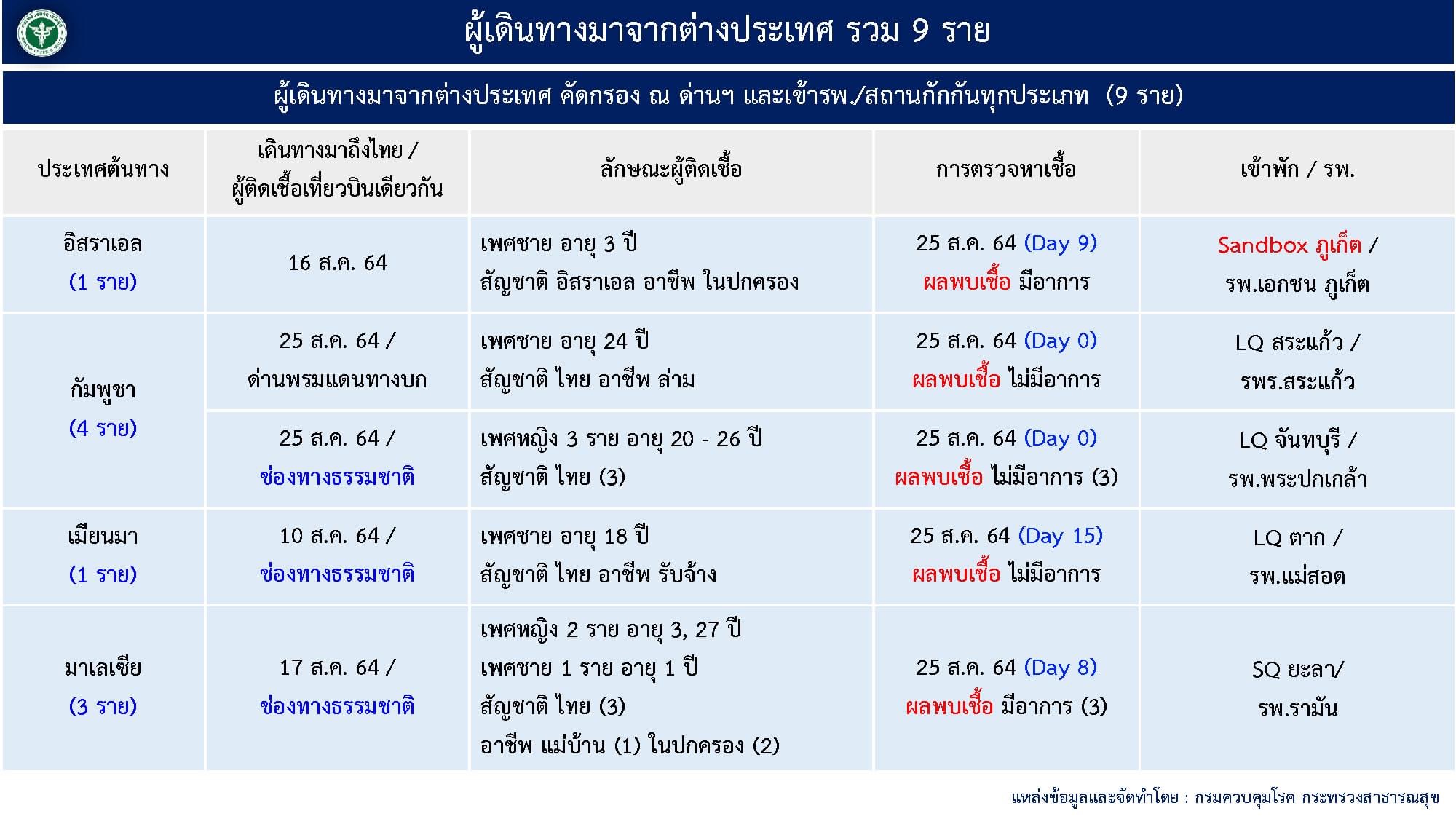 หมายเหตุ : อัปเดตข้อมูล เวลา 13.30 น. จากการแถลงของศูนย์บริหารสถานการณ์การแพร่ระบาดของโรคติดเชื้อไวรัสโคโรนา 2019 (ศบค.)