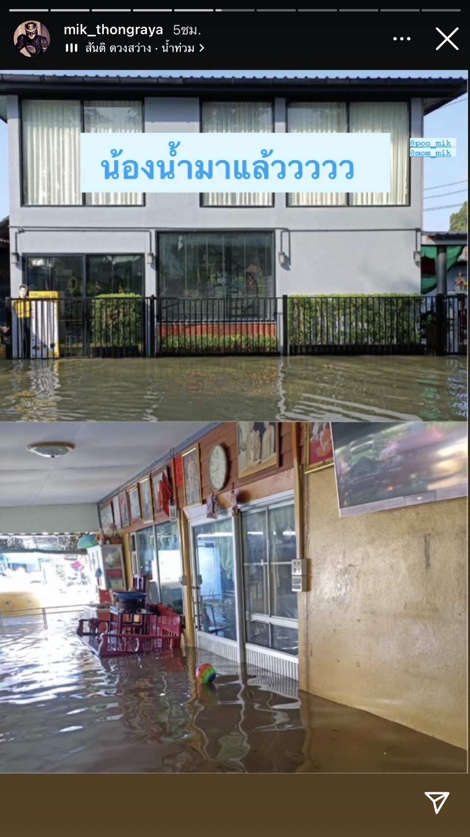 "มิกค์ ทองระย้า" เผยภาพน้ำท่วมบ้านที่สระบุรี แม่และครอบครัวช่วยกันย้ายของพระเอกหนุ่ม "มิกค์ ทองระย้า" เผยภาพบ้านที่ จ.สระบุรี โดนน้ำท่วมเข้าชั้นล่าง ขณะที่ครอบครัวกำลังช่วยกันขนของย้ายหนีน้ำ