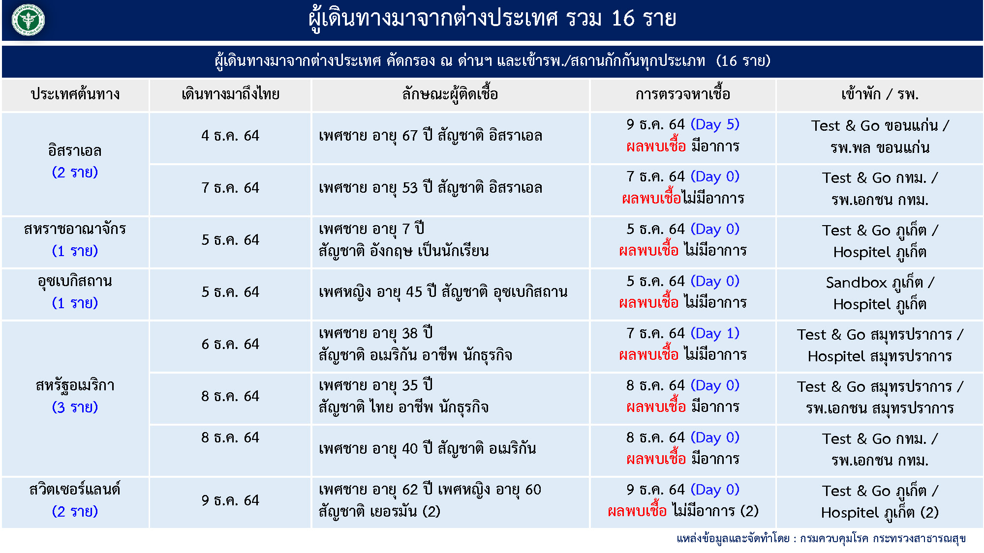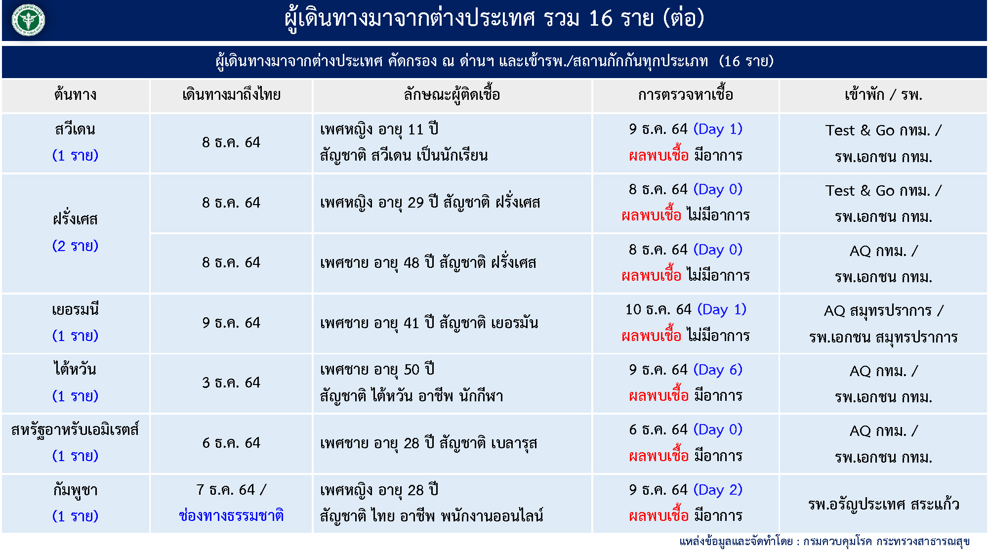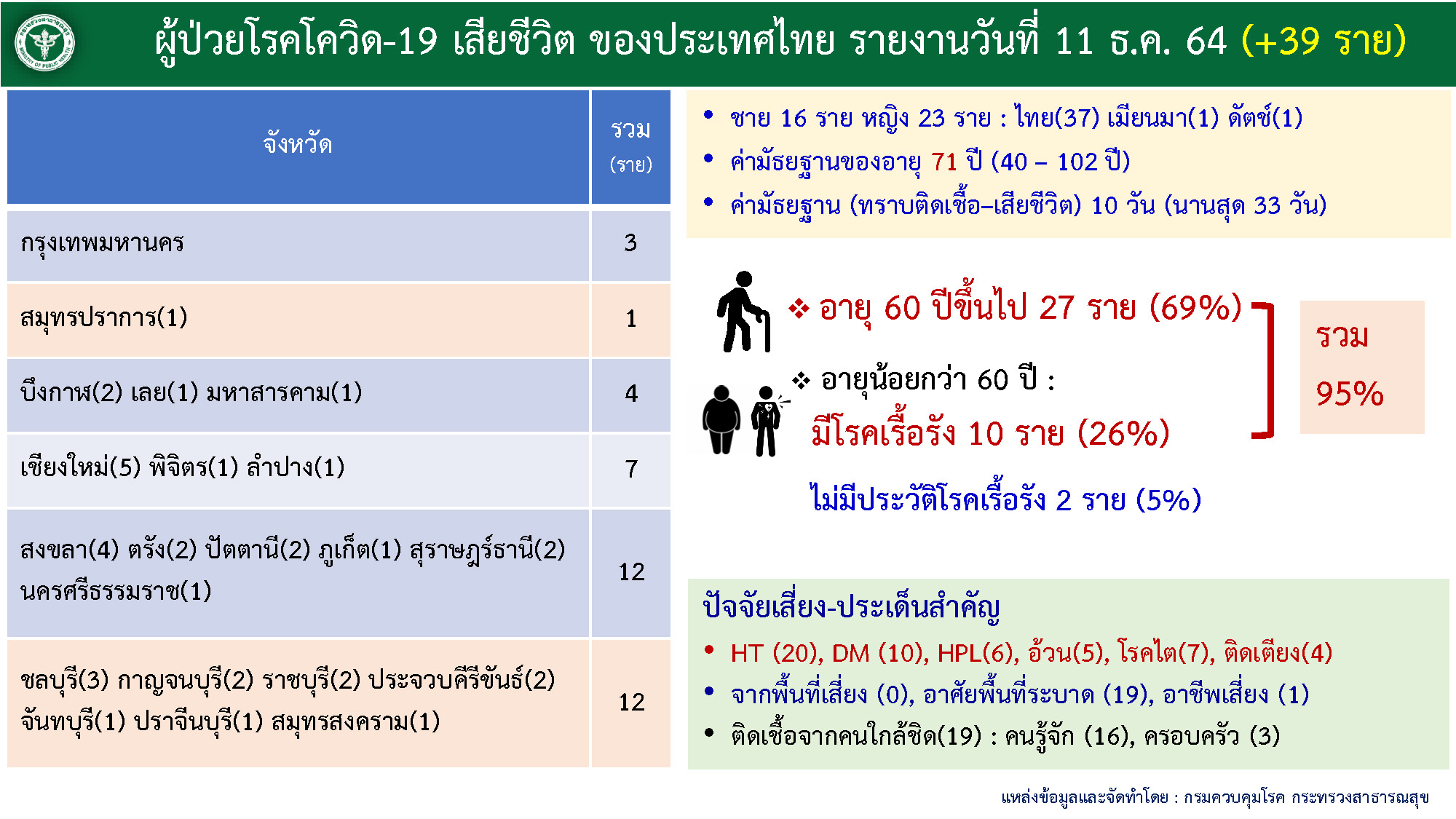 รายละเอียดผู้เสียชีวิตของประเทศไทยวันเสาร์ที่ 11 ธันวาคม 2564 จำนวน 39 ราย