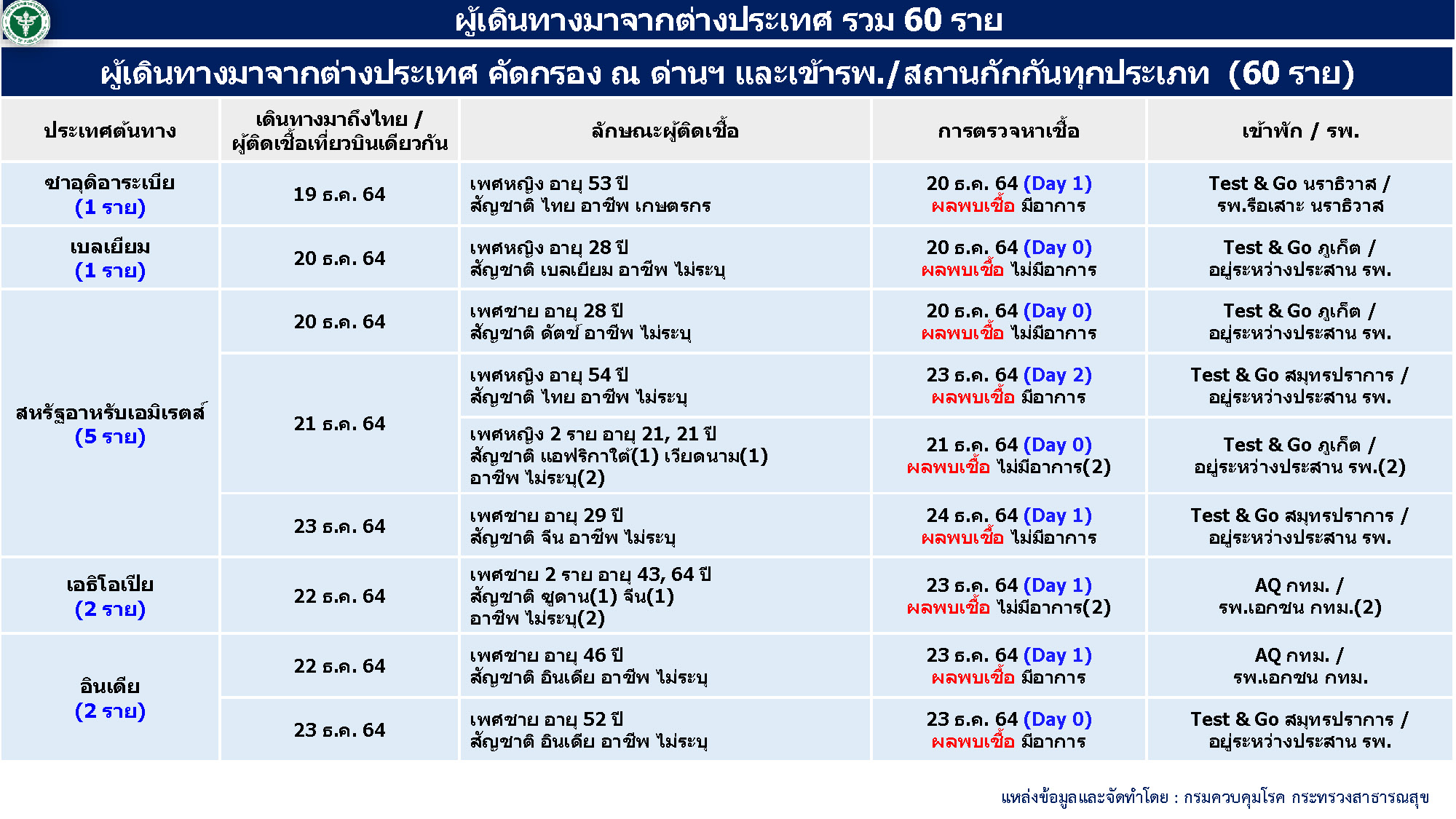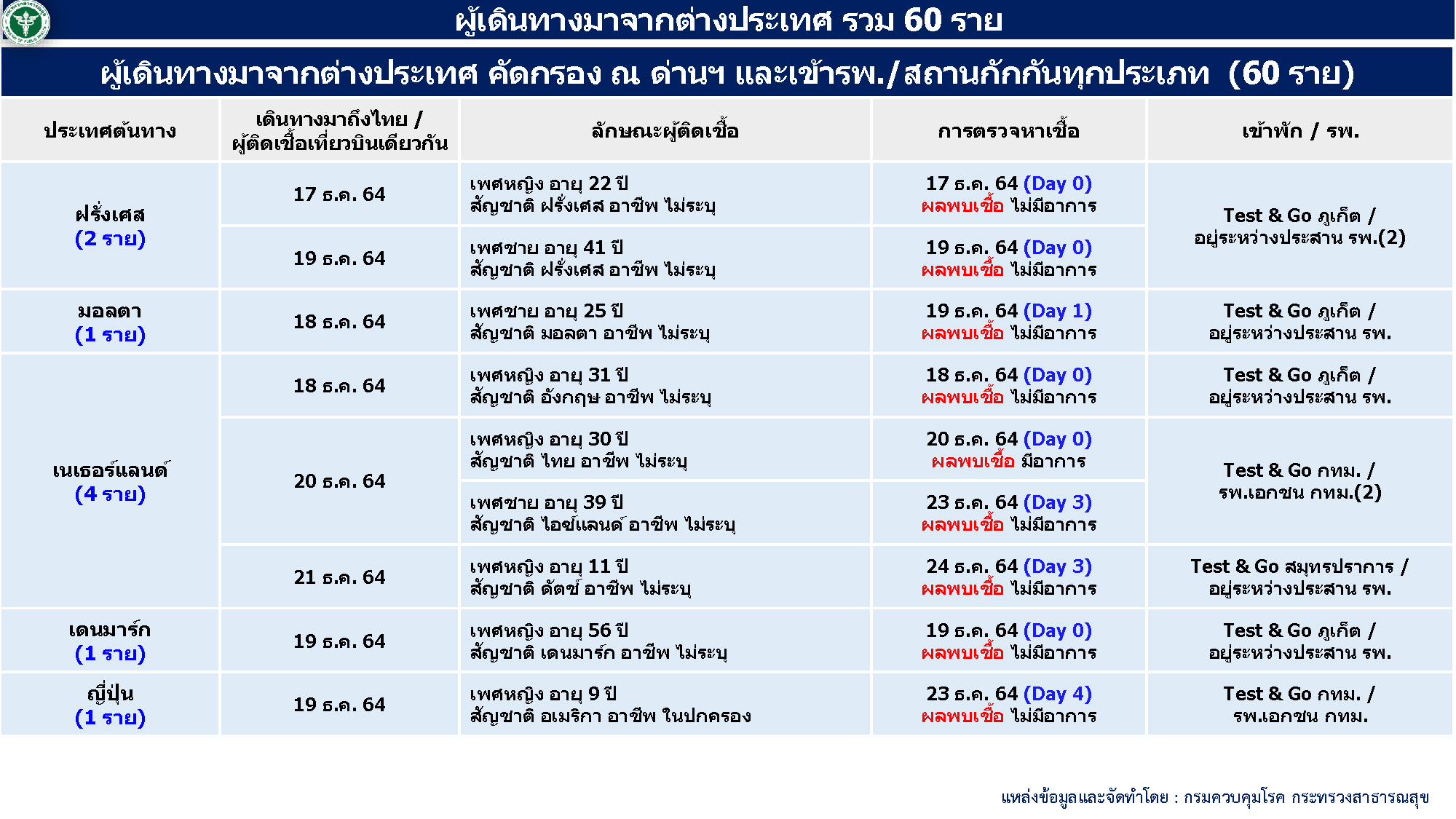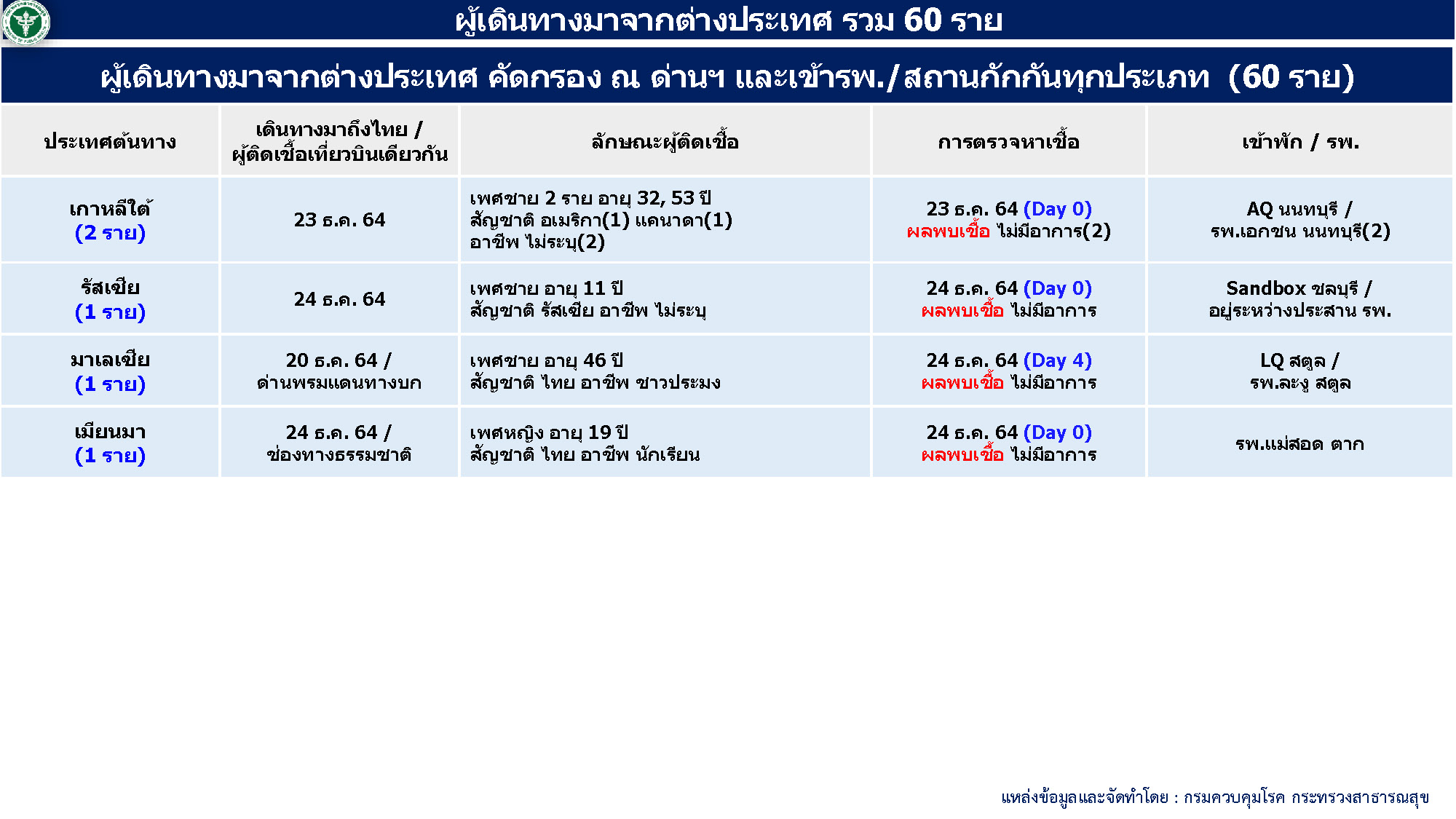 - ผู้ป่วยมาจากต่างประเทศ 60 ราย