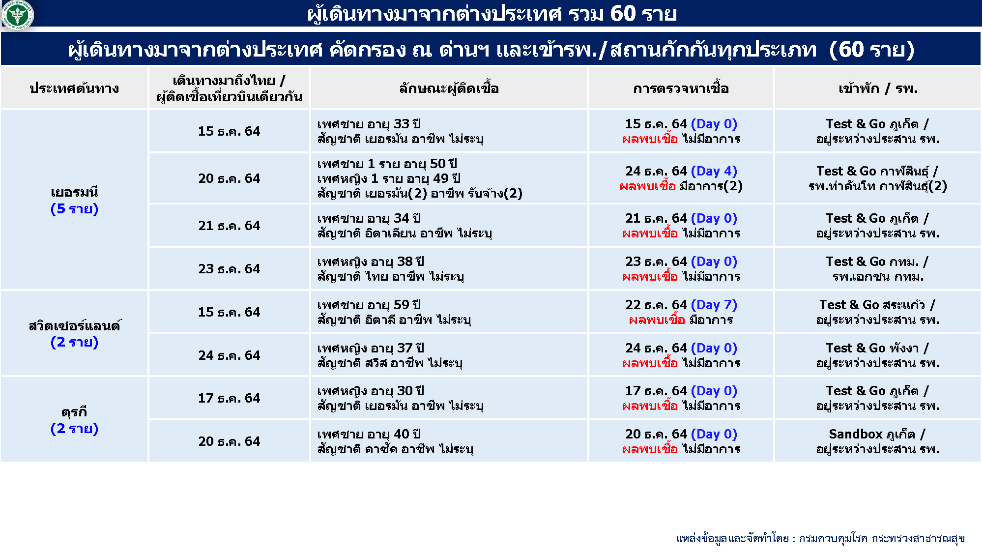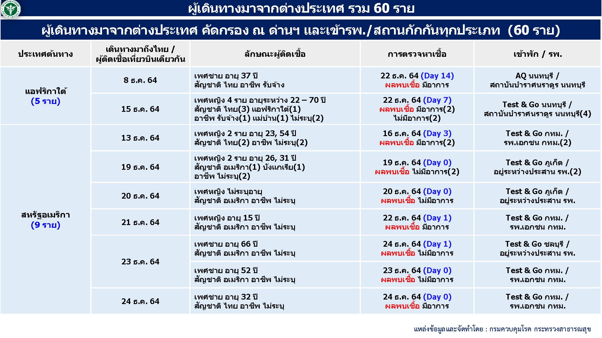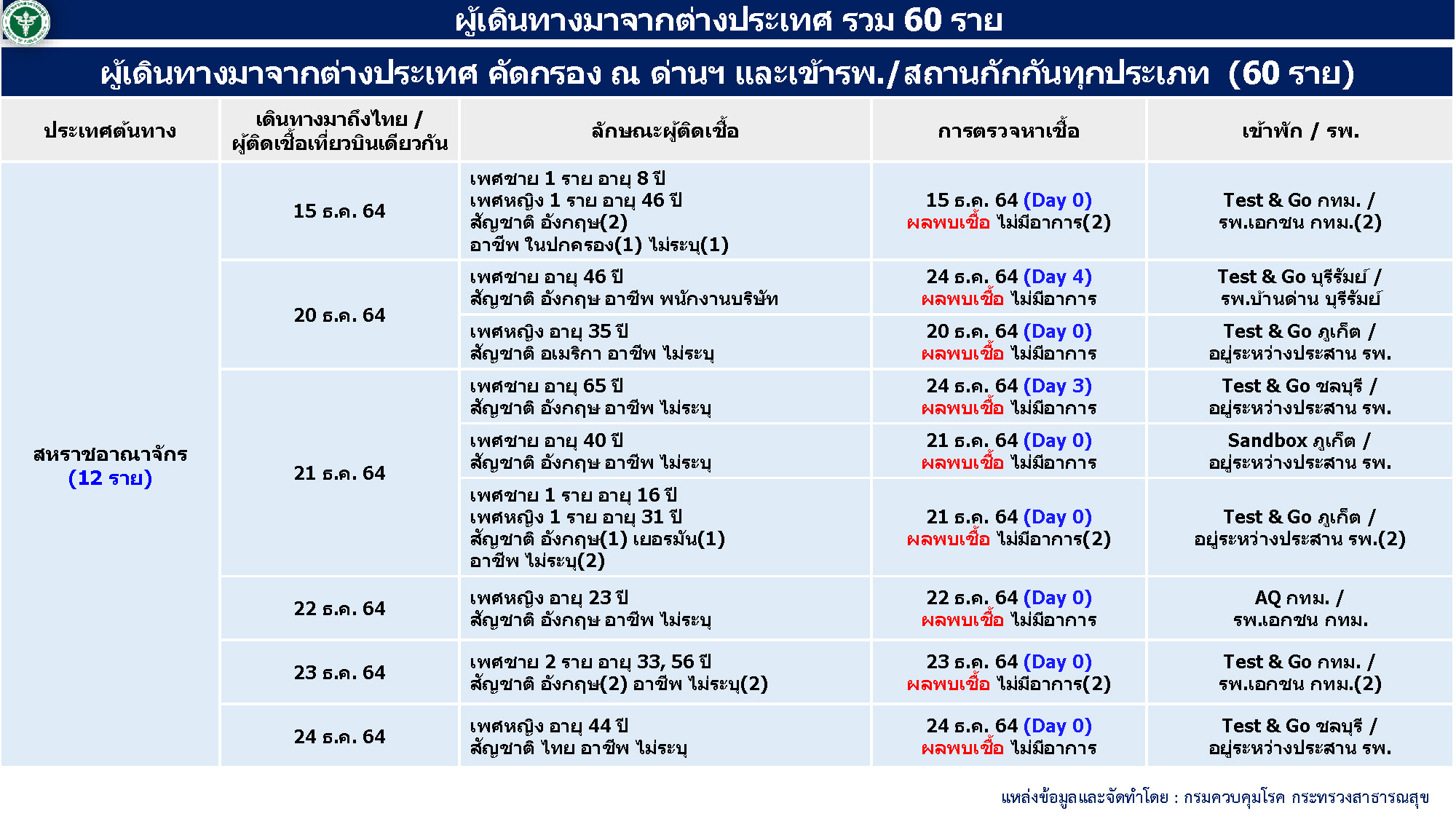 - ผู้ป่วยมาจากต่างประเทศ 60 ราย