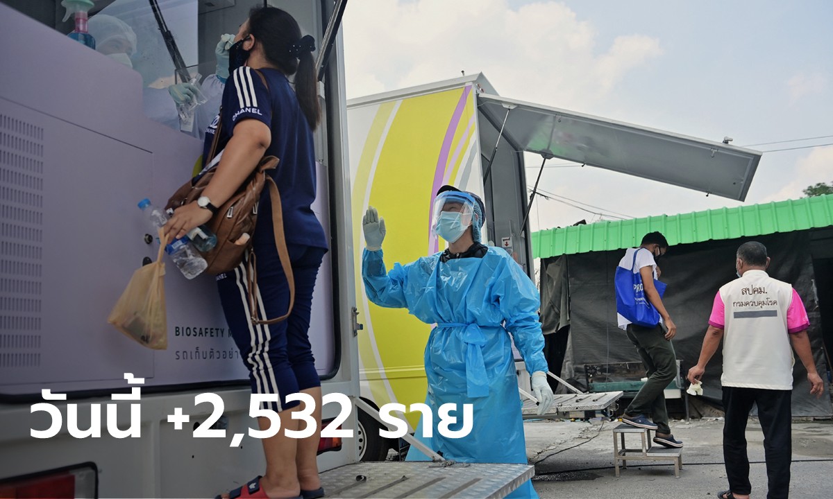 โควิดวันนี้ ไทยพบติดเชื้อเพิ่ม 2,532 ราย เสียชีวิตอีก 22 ราย