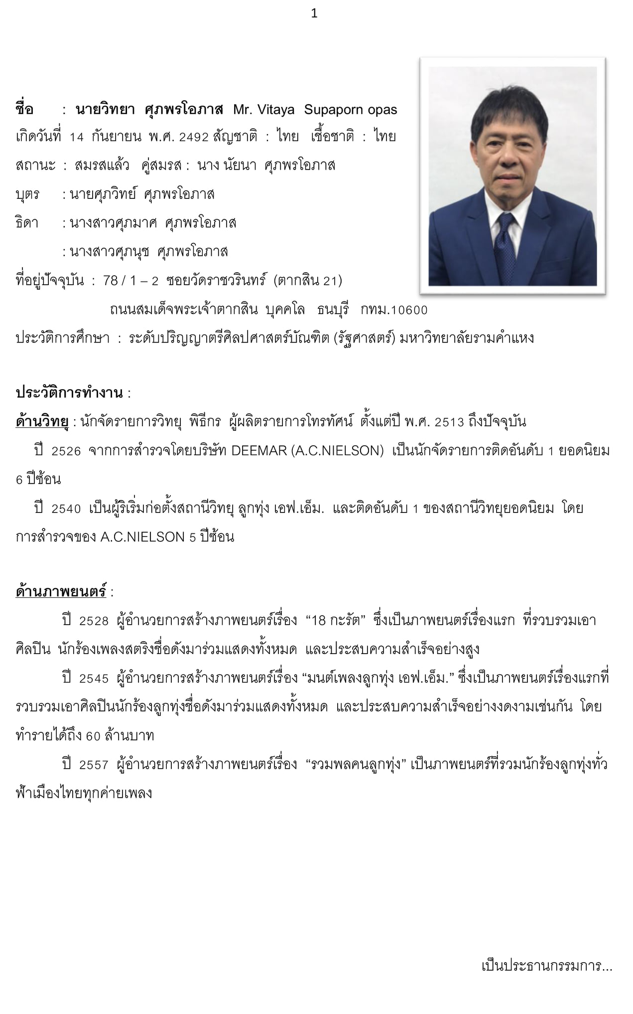 นอกจากนี้ เป้ ศุภวิทย์ บุตรชายยังได้แนบประวัติ พร้อมทั้งผลงานของบิดาไว้เพื่อรำลึกถึงอีกด้วย