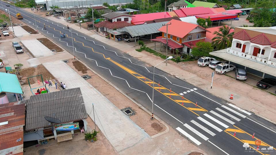 รวมถึงการปรับปรุงกายภาพสองข้างทาง เพื่อให้ผู้ขับขี่รับรู้ถึงการเปลี่ยนสภาพแวดล้อมสู่ช่วงเขตชุมชน โดยได้ทำเป็นโครงการนำร่อง เป็นที่แรกในทางหลวงขนาด 2 ช่องจราจร บนทางหลวงหมายเลข 2127 ตอน ศิวาลัย - สำโรงเกียรติ บริเวณชุมชน บ.หลักหินใหม่ อ.ขุนหาญ ที่จังหวัดศรีสะเกษ และทำการเก็บข้อมูลการใช้งาน Before & After Study วิเคราะห์ และประเมินผลในทุกมิติ เพื่อพัฒนา แนวทางการปรับปรุงทางกายภาพ และด้านอื่น ๆ ให้เกิดความปลอดภัยกับประชาชนสูงสุดในการข้ามถนนต่อไป